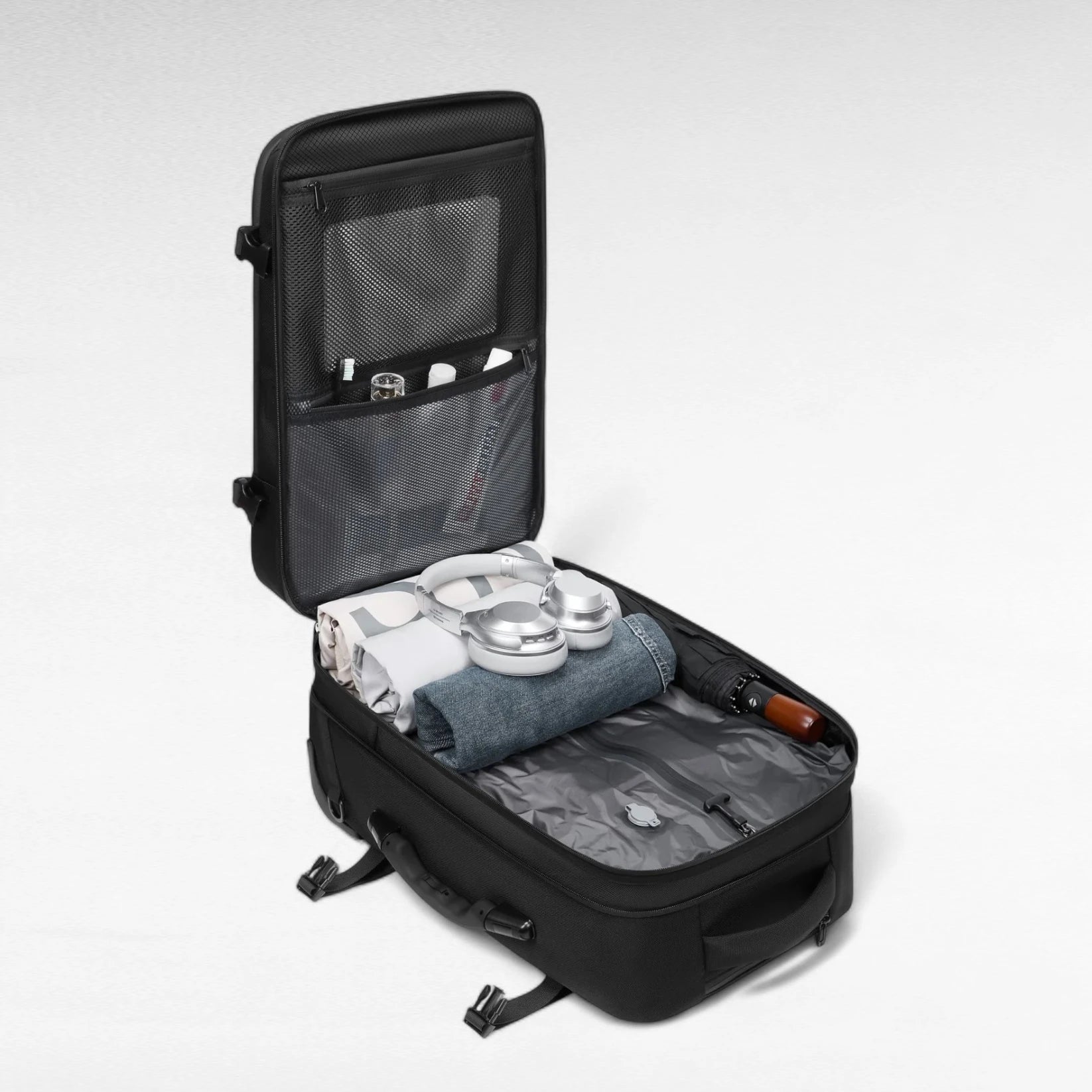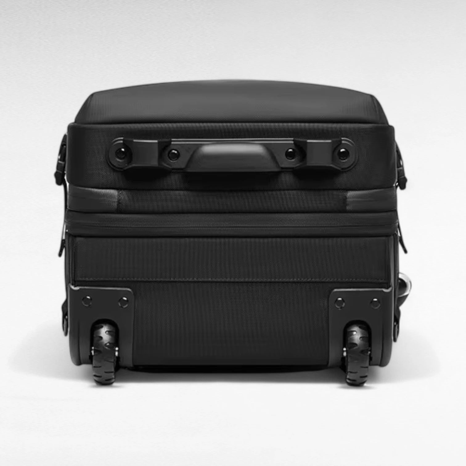 The RollPro replaces your overloaded backpack and your clunky suitcase. It’s built for real travel, packed with gear, and designed to keep up with the way you work.